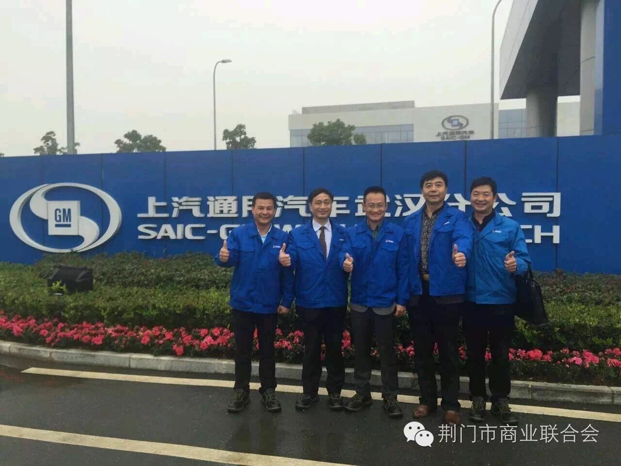 考察组一行与彭总经理(中)在上海通用汽车武汉分公司大门前的合影