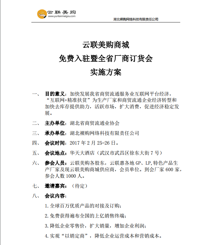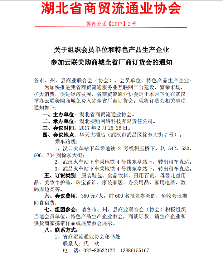 关于组织会员单位和特色产品生产企业 参加云联美购商城全省厂商订货会的通知