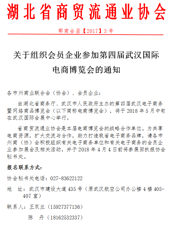 关于组织会员企业参加第四届武汉国际 电商博览会的通知
