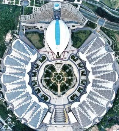 图为武汉国际博览中心12个展馆形似巨大的花瓣绽放在汉阳江畔