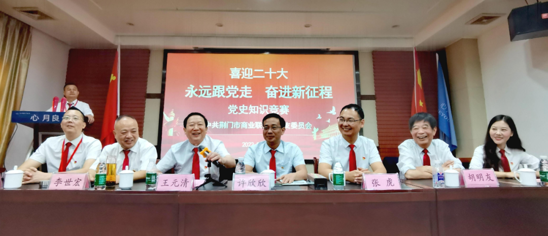 荆门市社会组织管理局局长许欣欣,荆门市委组织部一级主任科员张虎,荆门市商业联合会党总支书记胡明友,党总支副书记王元清、谢家猛、李世宏,党总支组织委员胡春俊,党总支宣传委员刘尚军在主席台就座。党总支副书记谢家猛,全程主持了本次竞赛活动。