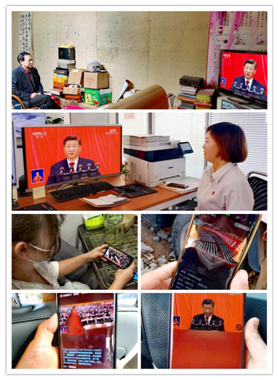 市商业联合会常务副会长、党总支宣传委员刘尚军,副会长兼秘书长简红葆,大健康行业发展专委会党支部书记雷军在居家隔离的情况下,自觉在家个人观看电视、认真聆听二十大开幕会实况,做好重点笔记,并收集整理编辑情况及时向有关部门汇报反映。共产党员张其德在外面办事,就地准时认真用手机收看,表示无论何时何地都不忘观看二十大,感党恩,听党话,永远跟党走。