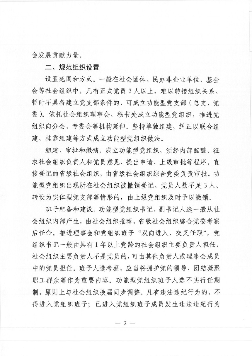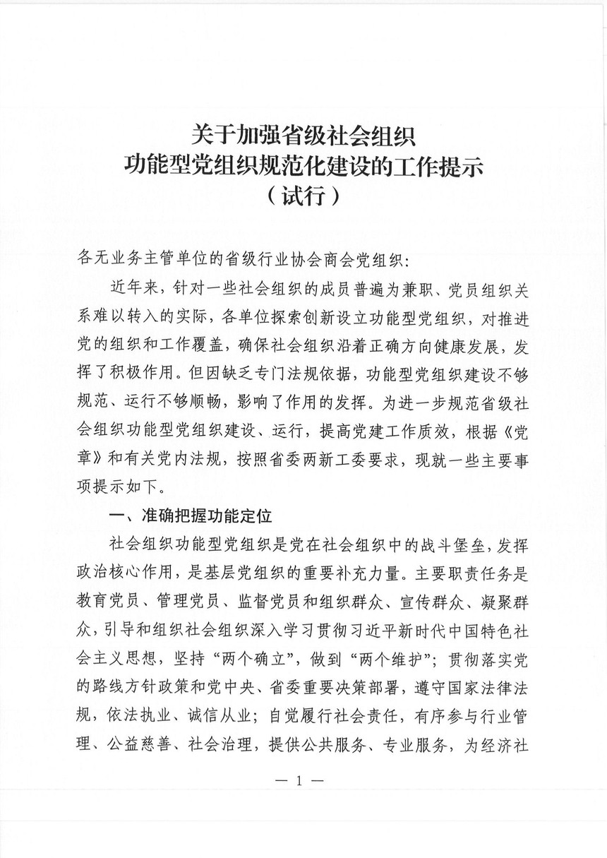 关于加强省级社会组织功能型党组织规范化建设的工作提示(试行)