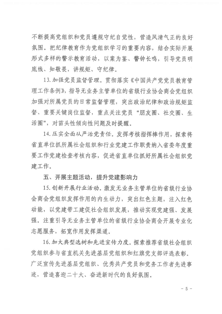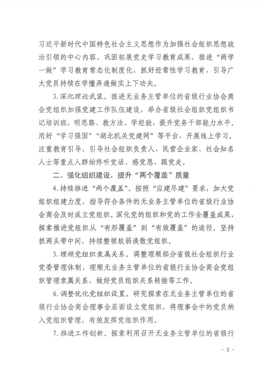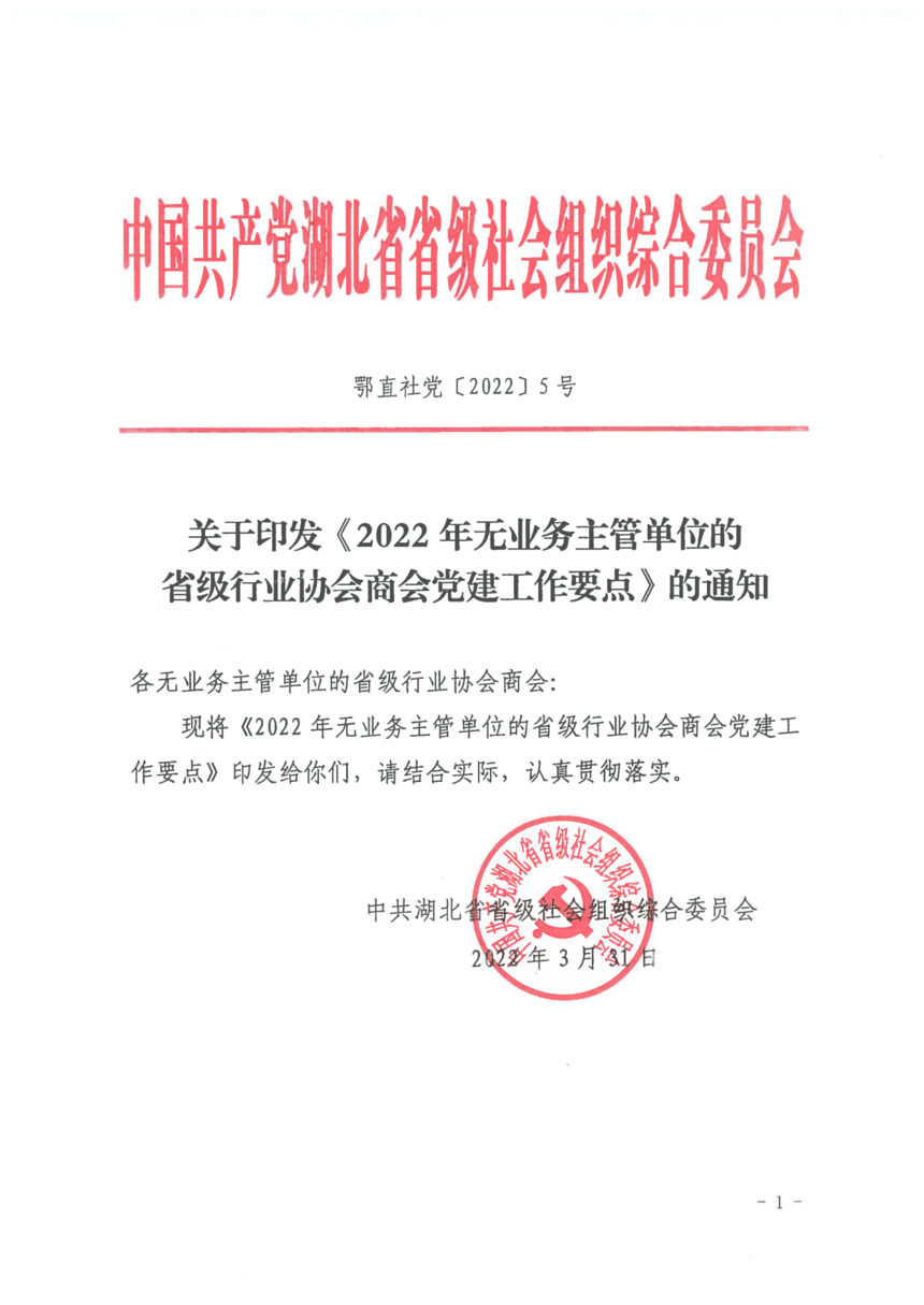 中共湖北省省级社会组织综合委员会《2022年无业务主管单位的省级行业协会商会党建工作要点》