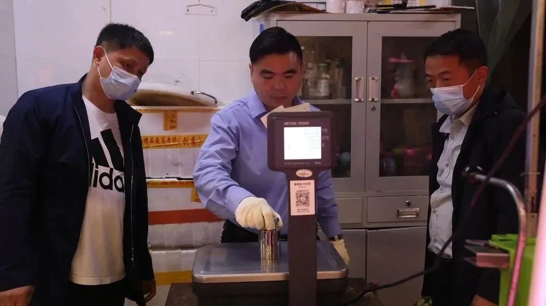 检定过程中,检定人员严格按照JJG539-2016《数字指示秤检定规程》的要求,使用标准砝码对每台电子计价秤置零准确度、称量、重复性等项目进行逐一检定,对电子计价秤的型号、厂家、铅封进行逐一登记造册,对检定合格的电子计价秤在醒目位置张贴检定合格证。