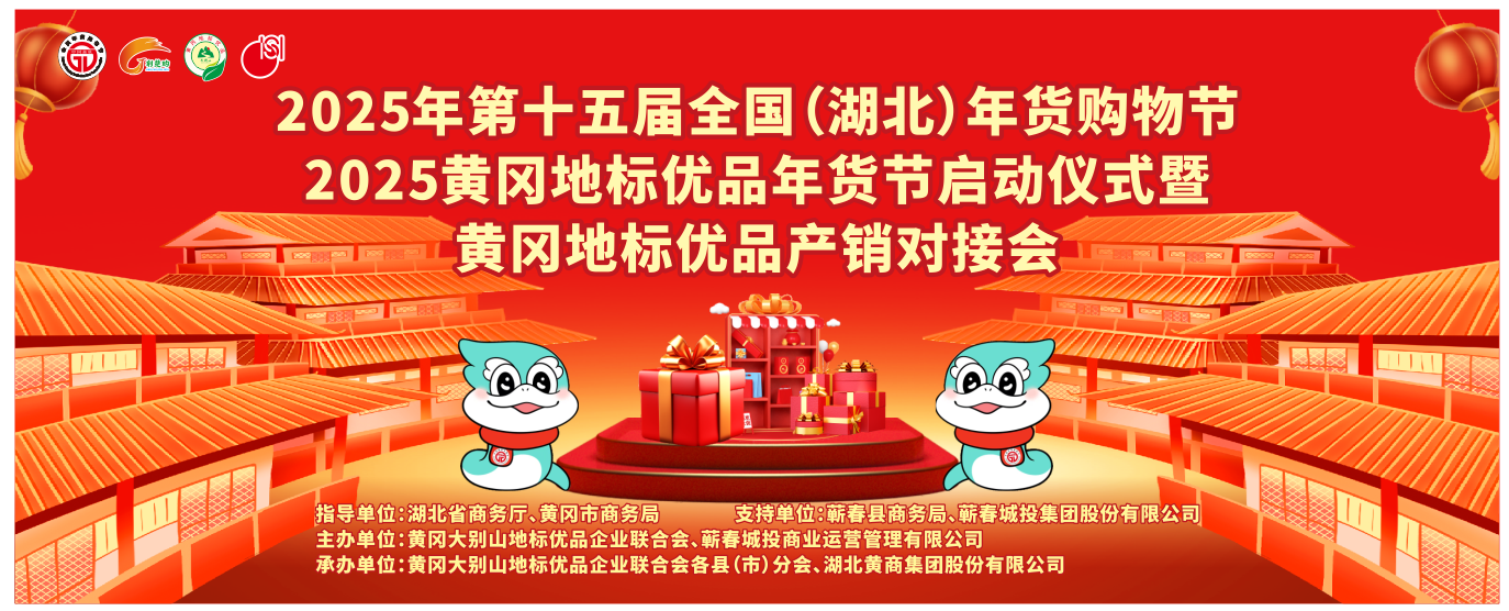 为全面贯彻落实中央经济工作会议精神,大力提振消费,全方位扩大国内需求,根据中国商业联合会《关于联合做好2025年第十五届全国(湖北)年货购物节组织工作通知》和商务部举办“2025全国网上年货节”启动仪式的有关精神,按照省商务厅促进消费工作的统一安排部署,由湖北省商务厅、黄冈市商务局指导,、黄冈大别山地标优品企业联合会主办,湖北黄商集团股份有限公司承办的“2025年第十五届全国(湖北)年货购物节、2025黄冈地标优品年货节启动仪式暨黄冈地标优品产销对接活动,于2025年1月8日上午10时,在“时珍故里,中国艾都”——湖北黄冈市蕲春县的九铭云府黄商购物中心盛大举办。